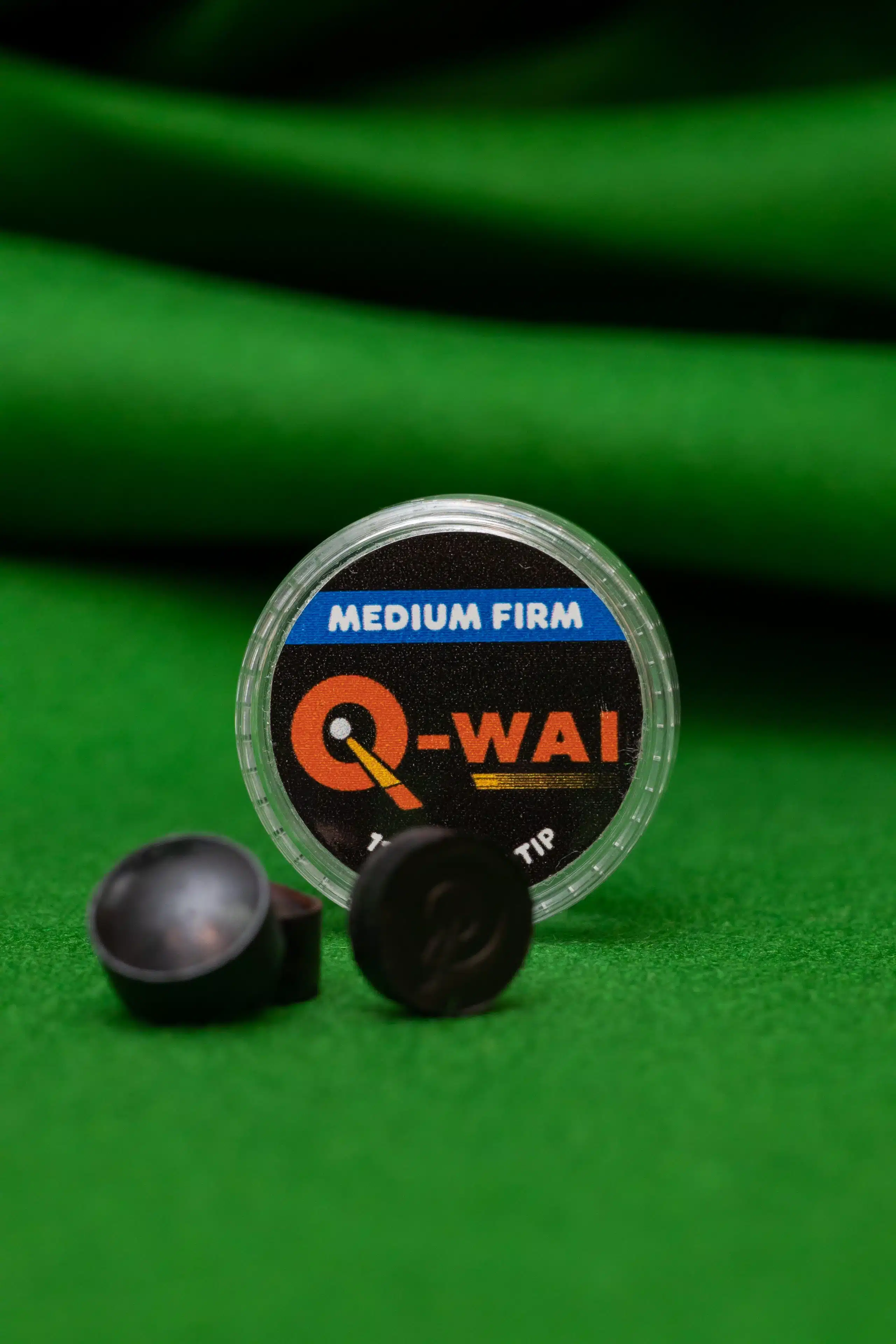 The Q-WAI Medium Firm Pressed Leather Tip offers a perfect balance of feel and power. Crafted from premium quality pressed leather, this great tip is ideal for all-around play. Its Medium Firm density provides realistic aiming and great cue ball control. Sold in a convenient jar containing 3 tips.